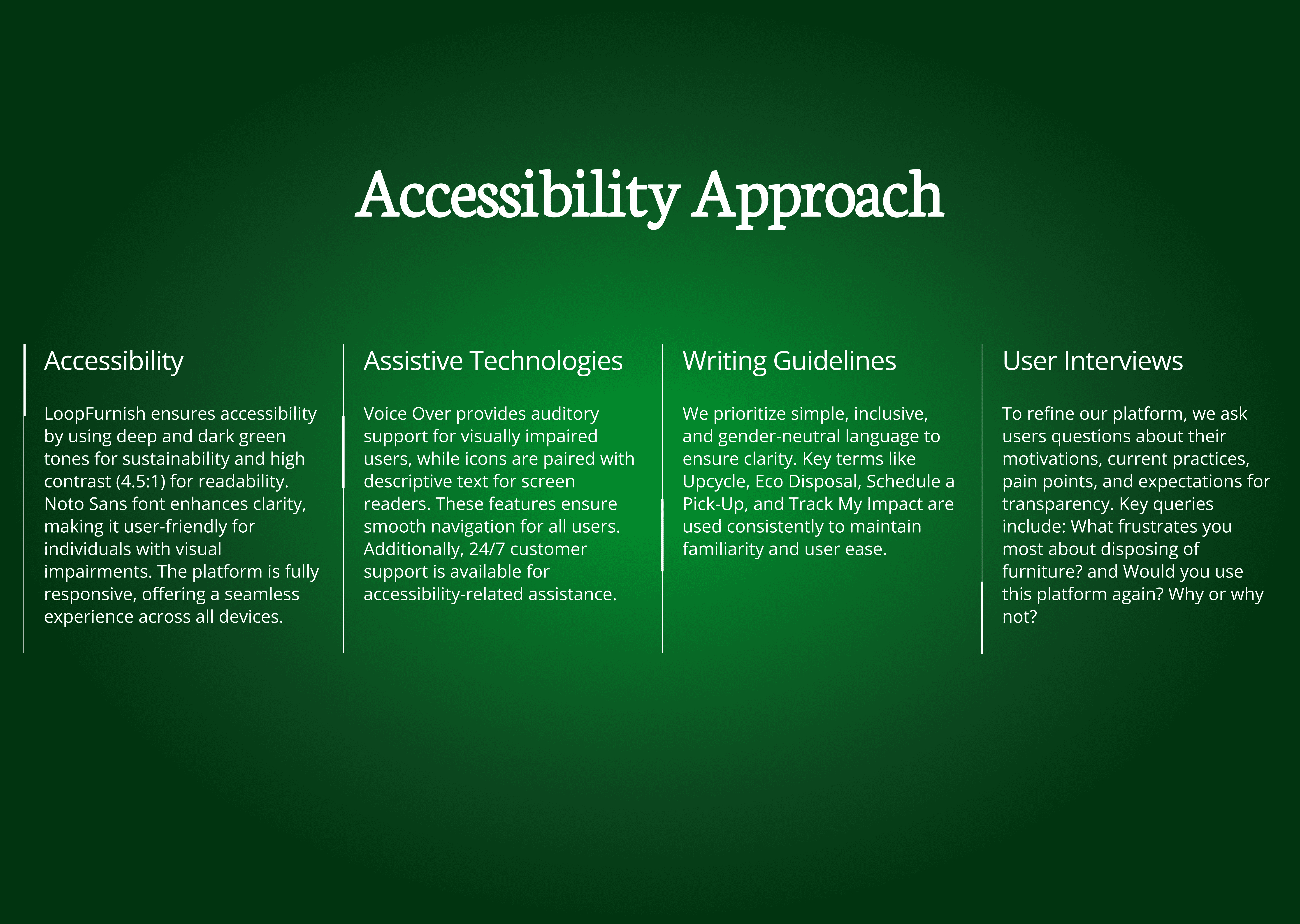 Loop Furnish is a conceptual UX project that explores how design can enable a circular furniture economy by making reuse, refurbishment, and recycling easy to understand and easy to trust.